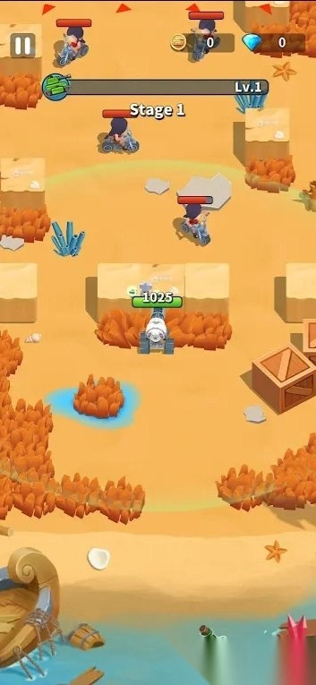 2. 始终留意躲避敌人发射的炮弹以及场地里的陷阱,一旦被这些击中或触发,会使坦克的生命值降低。