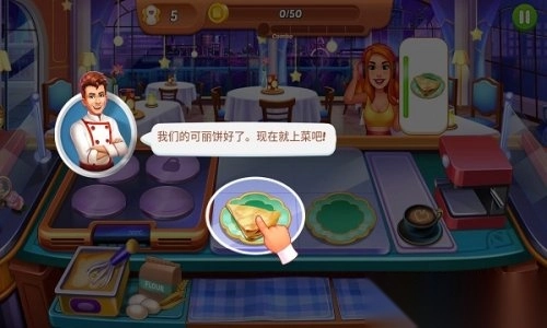 3)留意烹饪时间,若时间过长,可丽饼会糊掉。待烹饪完成,点击就能获取可丽饼。再次点击便可上菜!