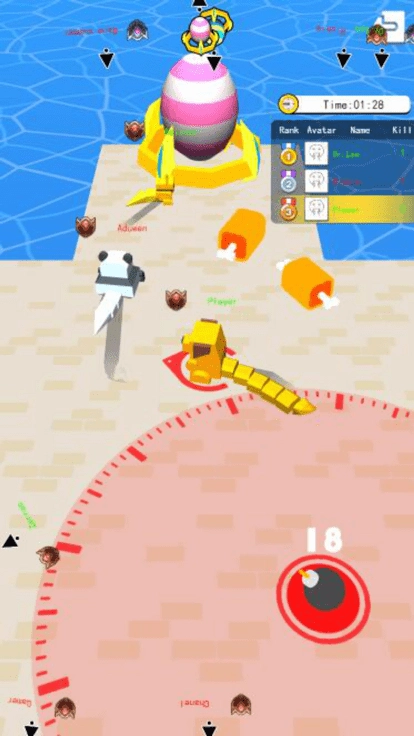 2、创意道具互动:在战场上,会随机刷新出各类特殊道具,像巨型弹簧、冰冻香蕉等等。一旦拾取这些道具,就能改变战局的发展方向。而且,不同道具相互组合,还能产生令人意想不到的连锁反应效果。