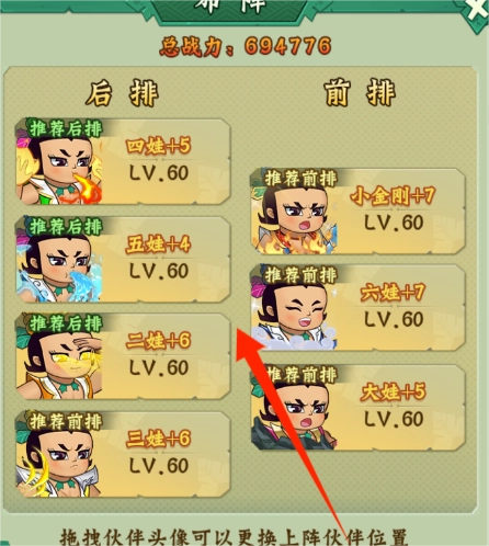 2、利用角色技能特性搭配,像带控制的伙伴(二娃、五娃)与输出(四娃、七娃)组合,形成控制链打伤害。