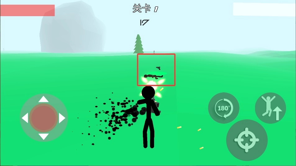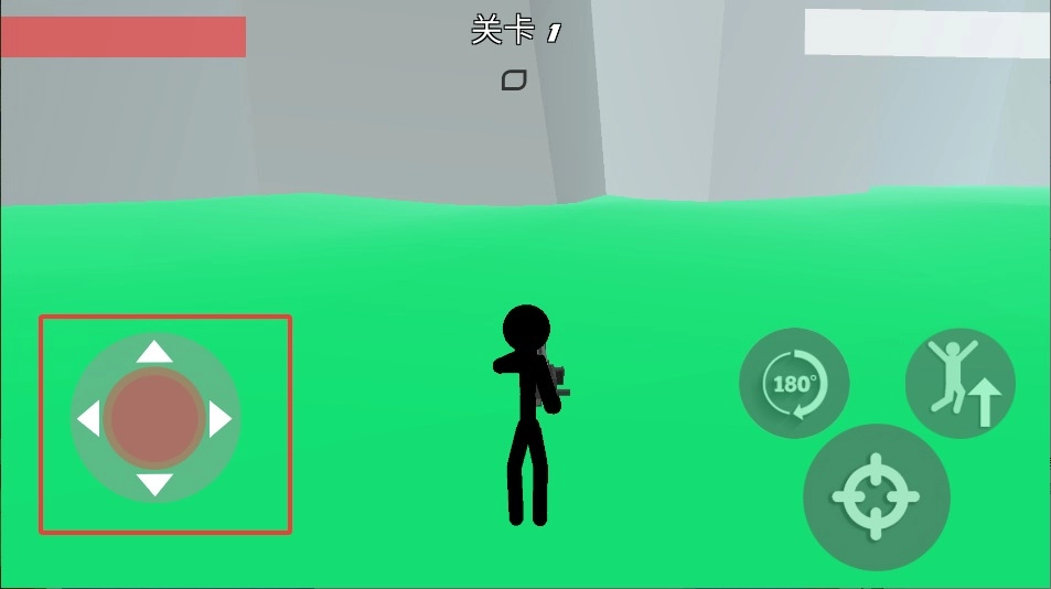 1、游戏界面左侧设有方向摇杆,通过手指滑动可操控火柴人前后移动。灵活走位能有效避开敌方火力攻击范围。