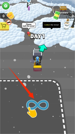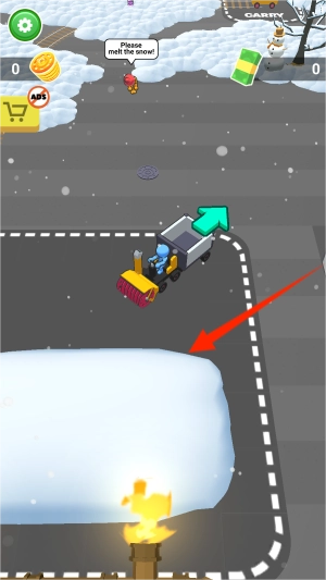 1、启动游戏后,通过左右滑动屏幕控制铲雪车移动,车辆会随着手势方向开始清理积雪。