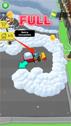 2、驾驶铲雪车持续清理道路积雪,当车厢装载量达到上限时,系统会发出满载提示音效。