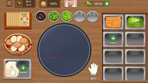 1. 游戏一开始,就能进入煎饼摊位的操作界面,通过点击或滑动屏幕,完成摊面、打蛋、加料等流程,依照顾客的要求迅速完成订单。
