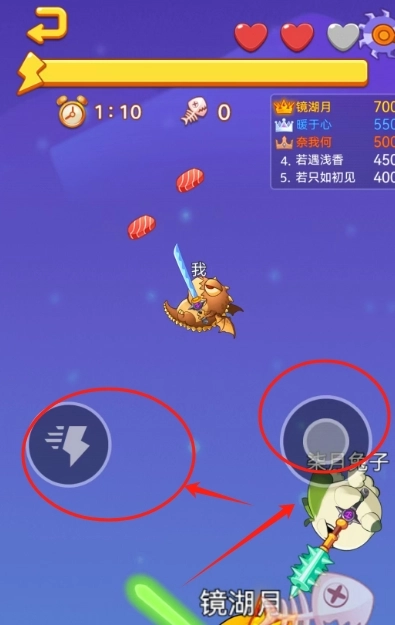 3、轻量化操作体验,单指滑动控制飞行方向,点击按钮释放技能。