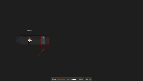 2、进入游戏后查看底部红框功能栏,使用方向键移动角色探索场景,同时注意收集HPYTDM等增益道具。