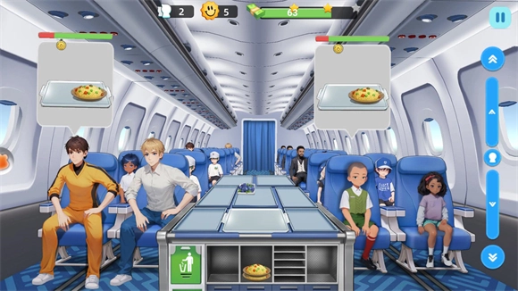 2、模拟真实航班服务流程,体验独特的空中厨房经营乐趣。