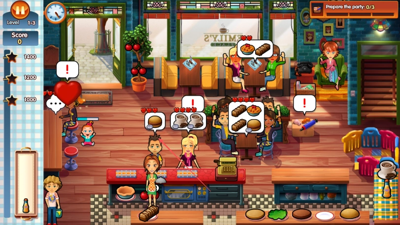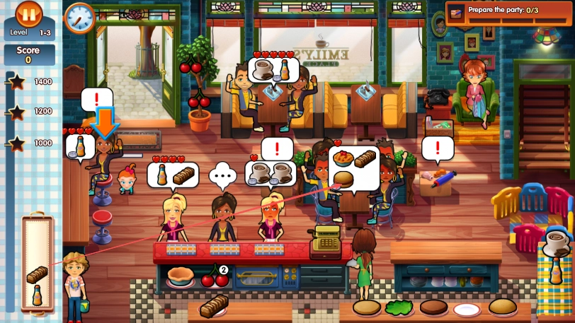 2、随着顾客数量增多,出现“Preparetheparty:0/3”的提示,此时需迅速点击下方食材,制作出顾客所需的餐点。