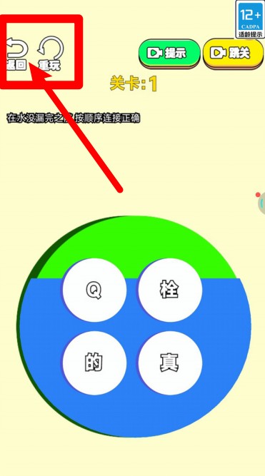 2. 轻点左上角的返回与重玩按钮,就能迅速回到上一个步骤或者重新尝试,以保障所有文字连接题目都能顺利完成。