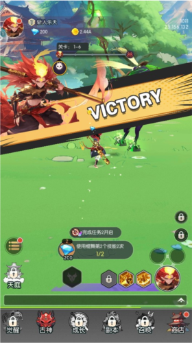 2、主线的关卡战斗包含两种类型:普通小怪与精英首领。只要玩家处于在线状态,古神伙伴便会持续不断地攻击普通小怪,在此过程中,玩家能够积累大量诸如金币、修炼石之类的资源。而精英首领则需玩家手动召唤,每当成功击败1名精英首领,就意味着完成了1个关卡的挑战。