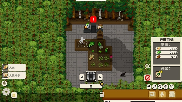 6、点击右下方的红色按钮,即可查看当前目标。完成目标后,能够解锁新的种子与建筑。