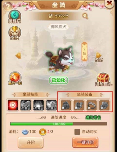 4、提升等阶能够激活相应等阶的技能,最后一个技能可获取稀有属性效果并开启。