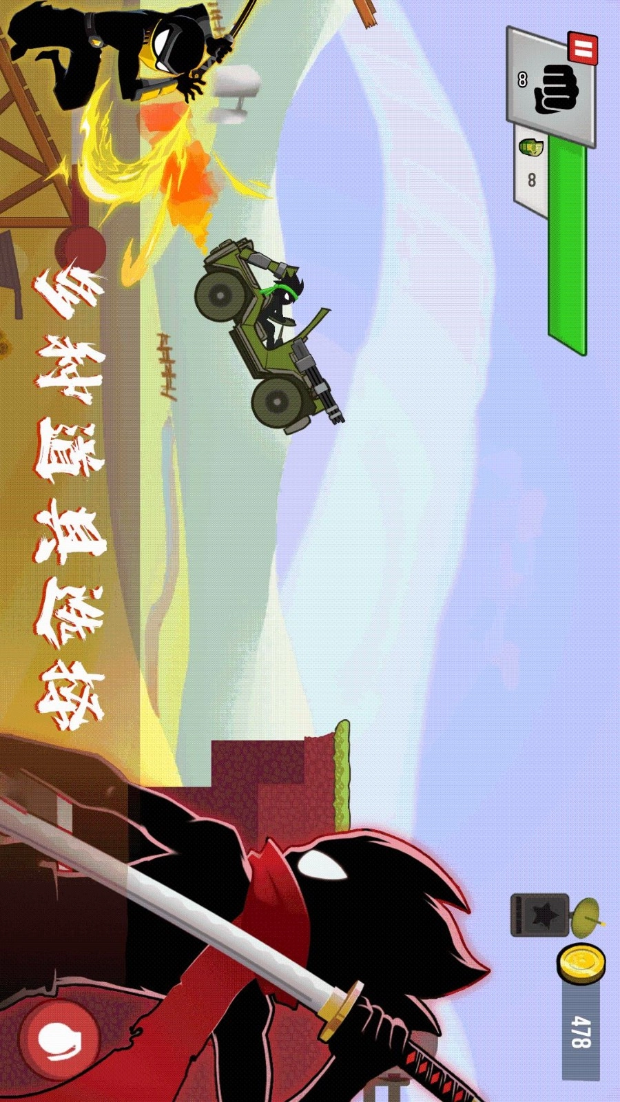《火柴人冲冲呀》是一款超精彩的射击跑酷游戏。在游戏里,玩家得灵活操控火柴人角色持续向前奔跑。遭遇各类强大的敌人与怪物时,要能迅速开枪射击造成伤害,尽快将其消灭,以此提高闯关效率、节省时间。每个关卡间的障碍会随机生成,带来不同程度的阻拦,玩家必须克服重重障碍与陷阱,抵达终点完成闯关。而且,这款游戏的玩法与操作极为简单轻松,上手基本没什么难度。游戏内有众多武器和角色供玩家挑选,通过更换武器与角色,能进一步强化战斗效果,还能有效减轻整体压力。喜欢这类游戏的朋友,快来体验一番吧!