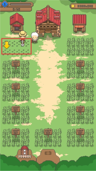 2. 轻点空地,拿起锄头开垦农田,为种植作物做好准备。