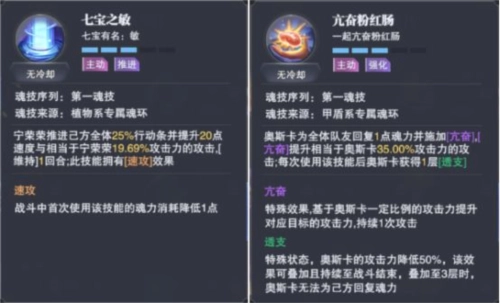 实际上,游戏里存在着一些能够提升伤害的buff。就像宁荣荣的第一魂技“七宝之敏”,它在拉动行动条的同时,还能为队友提高输出能力。还有奥斯卡的第一魂技“亢奋粉红肠”,不仅能帮队友恢复魂力,而且还能增加伤害。