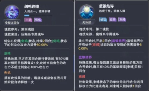 其中涵盖剑尘心的第四魂技剑鸣铿锵,此技能能持续为自身赋予攻击力;还有唐三(蓝银草)的第二魂技蓝银结界,该技能可对处于束缚状态的敌人提高伤害。