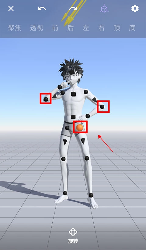 4、轻点屏幕,就能对其他部位的动作进行调节。此外,还自带海量动作,可直接选用。