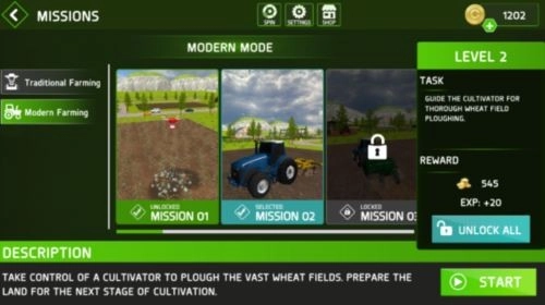 1、可选择农场模式,分为现代农场和传统农场这两种。在不同模式中,会设置不同的任务关卡。