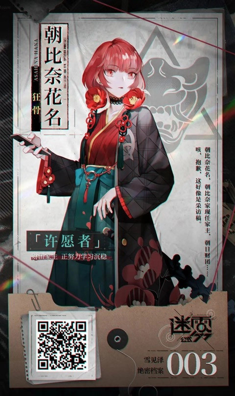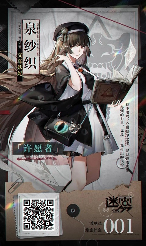 亲眼目睹家人为守护自己而付出生命,这强烈的冲击,让她不愿再仅仅充当被保护的角色。于是,她向迷雾许下心愿,换来了“守护他人”的力量,可代价却是失去了对家人们的记忆……在历经漫长的流浪岁月后,小雨结识了泉纱织等人,并加入了怪谈调查社,当下正全力以赴地度过试用期。