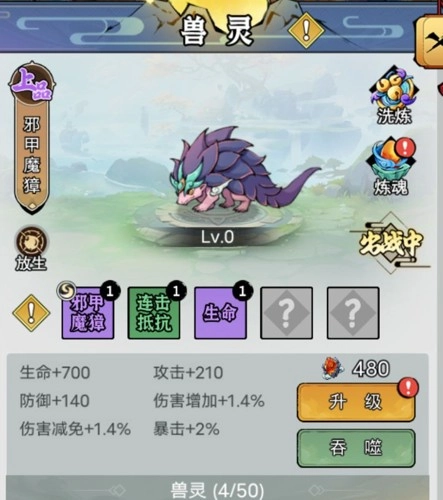 兽灵推荐如下:邪甲魔獐(适用于前期)、青角猛狮、落龙子以及摩柯战象。