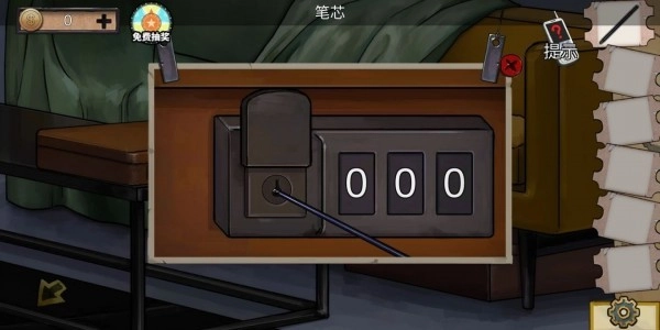 3、将笔拆解,取出笔芯,接着拿笔芯前往休息区打开箱子。