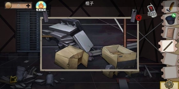 17、在脚手架下方,点击杂物堆,取走空桶。接着,使用棍子挑起垃圾,拿到下方的钥匙,再用这把钥匙打开对面的木门。