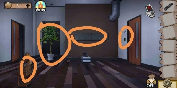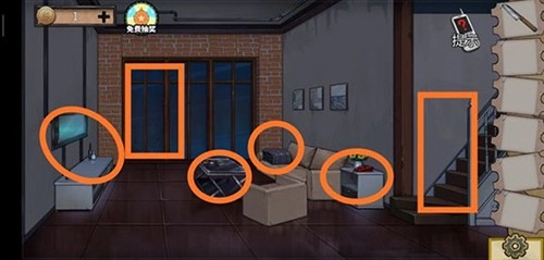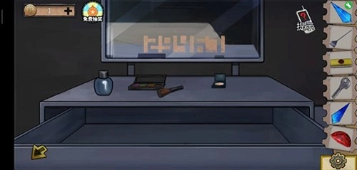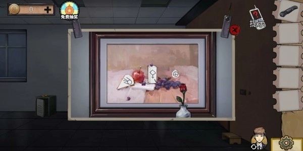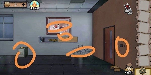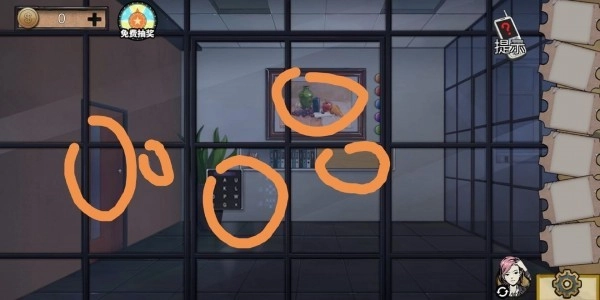 21、首先点击保险箱,依据刚才所见到的密码盘图案线索,把按钮移动三次,从而打开保险箱并取出钥匙。接着点击柜子,再点击左上角的花瓶,打开花瓶拿出卡片,最后将卡片放置到涂鸦之上。