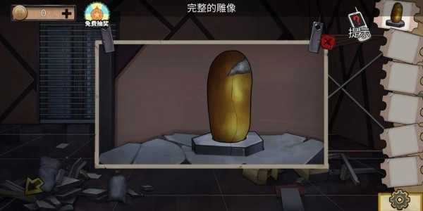 19、把空桶、水泥和桶装水组合成水泥,用此水泥粘住破碎的雕像,得到完整的雕像。接着,将完整的雕像放置在门左边石阶上的凹槽内,门便会打开。