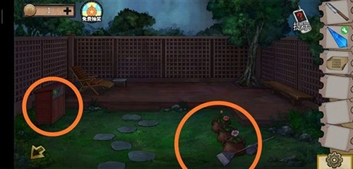 18、推开木门,拿到旁边的水桶。门锁密码藏在一楼垃圾桶上,是两个数字,36与89。输入密码开锁后,可获得另外半个雕像。