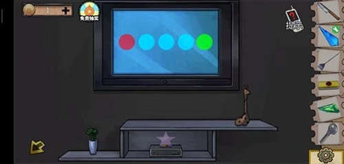5、这片塑料片是要拿到二楼去的。而这个图要应用在一楼的电视上,如此一来,下面的抽屉就能打开,从中获取绿色碎片,将其组合后,可开启二楼的另一个房间。