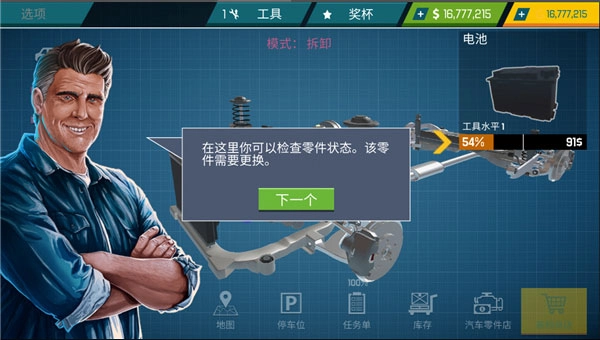 2、玩家接到订单后,需先判断轿车的故障位置,再寻找合适的零件进行替换。