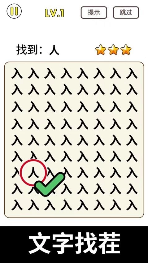 天天去找茬,这是一款简单又惬意的文字题材休闲益智游戏。它的界面场景设计简洁清新,在游戏里,玩家要从大量相同文字中,找出那些与众不同的。而且得在规定时间内成功找出所有不同的文字才行。游戏还贴心设有提示功能,玩家点击就能使用。借助提示,能快速发现各个位置隐藏的文字,这能给玩家提供多方面信息与指引,完全不用担心会陷入迷茫。随着游戏推进,各种复杂汉字会逐步解锁呈现。到了后期,面对的汉字对玩家细心程度和观察力是个不小的考验,稍有疏忽,就会错过许多细节差异。感兴趣的朋友,快来体验一番吧,趣味满满哦!