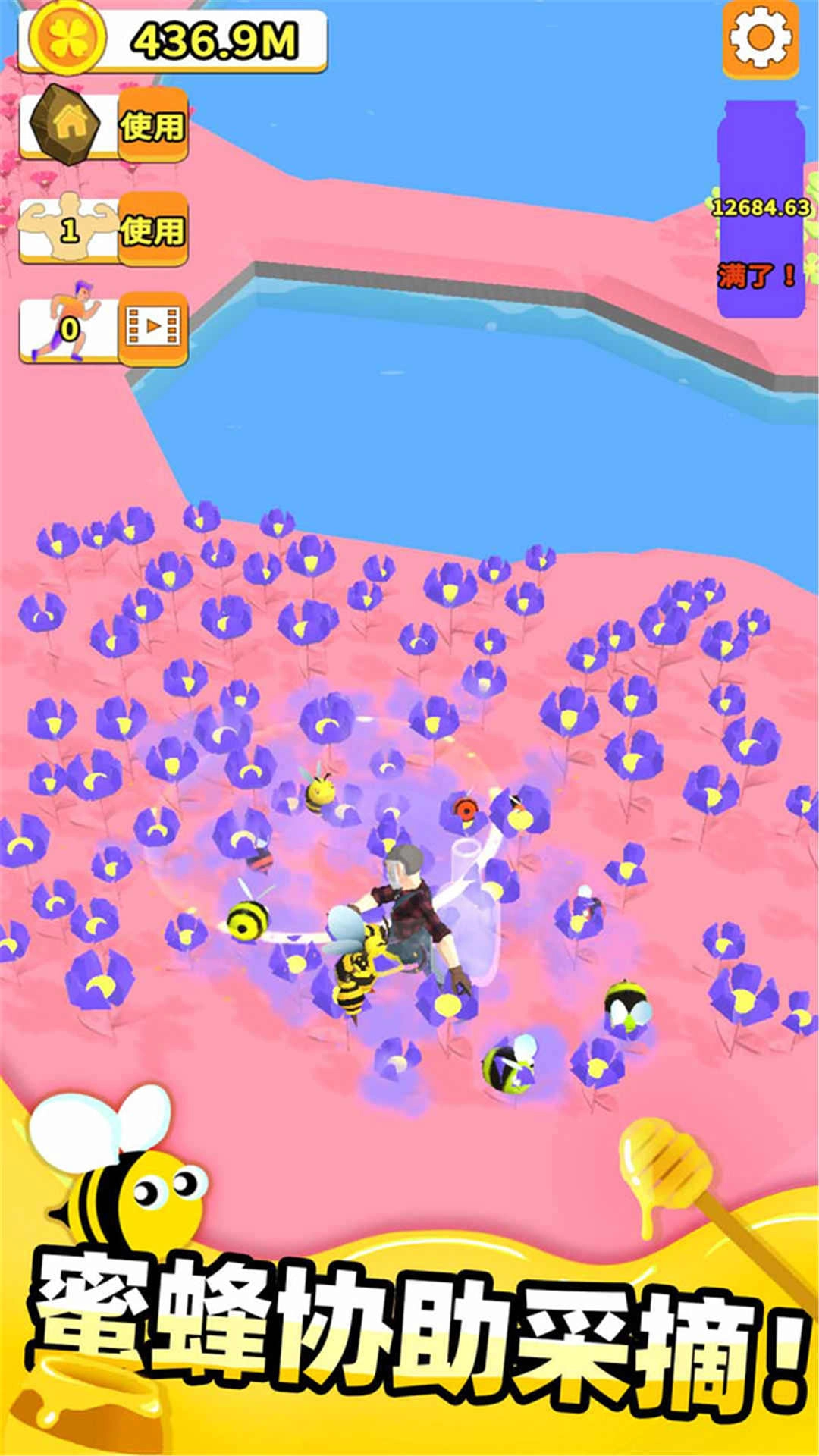 1、呈现蜂蜜的出处与管理方式。玩家会引领众多蜜蜂于游戏里采集花蜜。