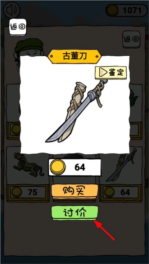 3、玩家购买古董物件时,能与摊主议价,在合理价格范围内完成购买就行(若摊主认为价格不合适,会将玩家赶走,一旦被赶走,就无法再次进入该小摊)。