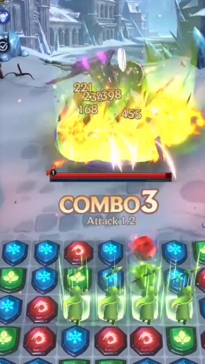 3、战斗系统创新性地融合了三消与英雄卡牌元素,并引入属性克制玩法,让玩家能够凭借策略展开博弈。