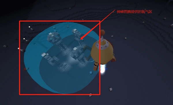 2、当我们乘坐火箭降落时,能看到如图所示的蓝色屏障,这便是首次来到萌眼星时,由神秘图腾提供的氧气。要留意,这个氧气仅能维持5分钟哦~