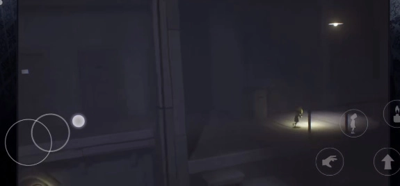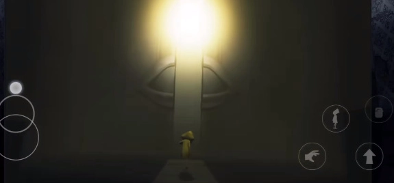 1、在游戏之中,借助位于两侧的按键操控角色展开冒险闯关之旅。游戏营造出恐怖的环境氛围,场景阴暗,而且每个区域都设有独具特色的谜题与陷阱。