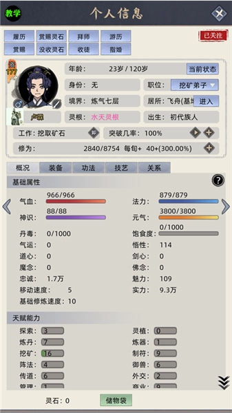 在设定中,每个人都会拥有父母、道侣、弟子、师尊、宗门、家族、好友等角色关系,致力于全方位还原修真世界里复杂的人情关系与各类事件,且此设定会持续迭代优化。