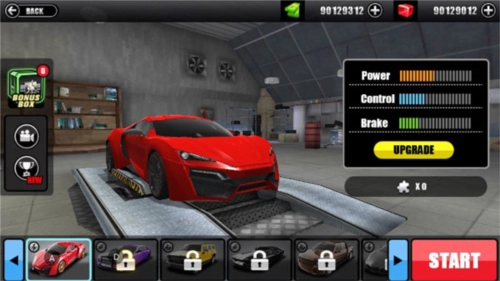 除玩法外,赛车改装一直被视作重中之重。在游戏首界面,点击下方赛车就能解锁,借助右侧的升级功能可强化赛车的能力属性。