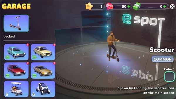 4、轻点右上角的手机图标,接着点击汽车标志,即可进入车库,在这里你能够选购属于自己的车辆。