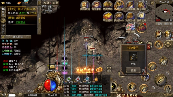 上线后,首先跟着主线任务走,把盟重省的几个副本逐个刷一遍。这里的怪物血量少,爆率却很高,新手装备很快就能刷齐。刷完副本,身上就已换上了一整套装备,背包里多余的装备,可以利用回收功能,将其回收换成元宝。