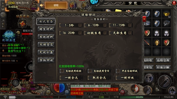 4、要是刷到多余的装备,不用担心会浪费,在游戏里可通过在线回收获取元宝。