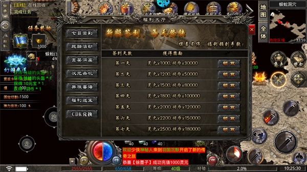 2、bdcq666:礼包内有高级转生丹(通用)1个、心法1宝箱(绿色)3个、心法残片50片、黑铁200个。