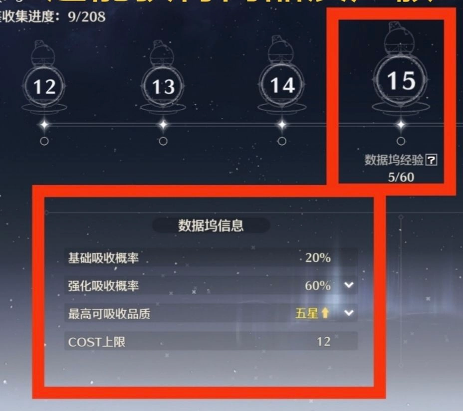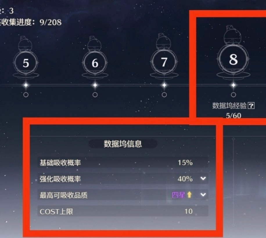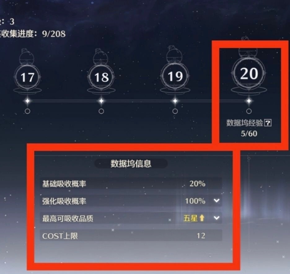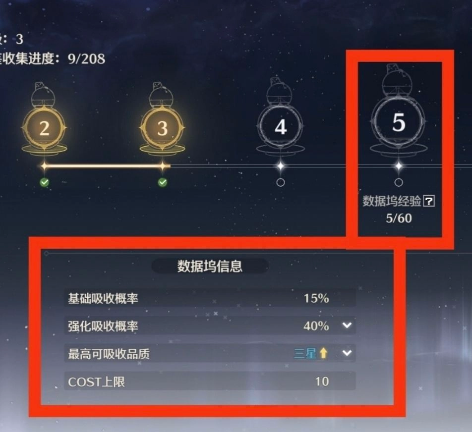 另外需要说明的是,数据坞等级会受索拉等级(即世界等级)的影响,有时需先突破索拉等级,才能提高数据坞等级上限。在未突破索拉等级时,数据坞溢出的经验会被储存起来,待突破后用于升级。