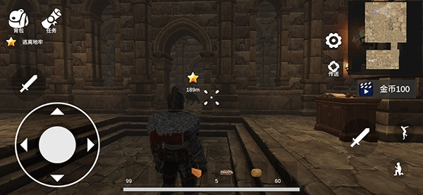2、若该任务是逃离地牢,此时玩家既能够依据前方的星星指引前往目的地,也能够借助右上角的地图查看目的点。