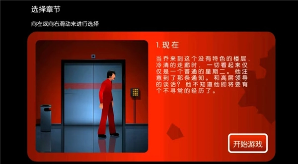 从墙上的通知可知,二楼老板要见你。上电梯得用蓝色卡片,先进入自己办公室,拿起架子上的灯泡,换掉坏掉的灯泡。等灯亮了,拿起桌上的蓝色卡片。架子上有手套,接着前往需要蓝色卡片的电梯,用卡片打开电梯前往二楼。和秘书交谈,让秘书开门找到老板,拿到红色卡片就能去地下室(注意,这里的电梯要按一下绿色按钮,门才会开)。走到最后一个房间门的读卡器处,戴上手套就能修好。进去后会看到一个穿白衣大褂的人,点击他可获得餐巾纸,用餐巾纸擦去血迹,把带血的纸送到秘书那里,能得到一张创可贴。回到白衣大褂所在的房间,里面还有一扇门,用创可贴粘住其中一个按钮,再点击另一个按钮,门就会打开。进去后和受伤的人对话,就能获得时光机。走出房间后,你就被带到了警察局。