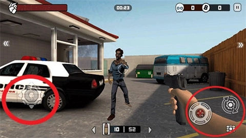 2、想观察周围环境?只需在屏幕上滑动手指,就能轻松转动视角,随时发现潜藏的僵尸。战斗时,轻点右下角的按钮即可开枪,唯有反应敏捷之人,才能在这危机四伏中长久存活。