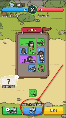 4、倘若在某一关卡遭遇困难,可借助刷新功能变换兵种,从而强化阵容的输出能力。
