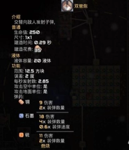 2、炮塔运转离不开弹药,你能够借助建造的小问号,来了解所需的弹药种类。当下,我们仅能使用铜这种材料,力求保持简单高效的运作模式。