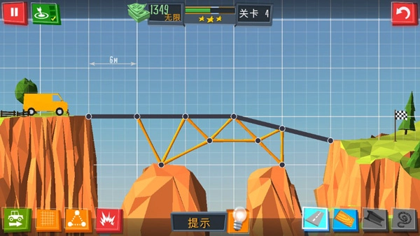 在桥梁建造者这款游戏里,玩家会化身为一名桥梁建造师,要用最少的预算搭建一座能让汽车顺利通行的桥梁。而且得依据不同的地形,建造出各异的桥梁,以此完成关卡挑战。感兴趣的小伙伴们,赶紧来体验一番吧!